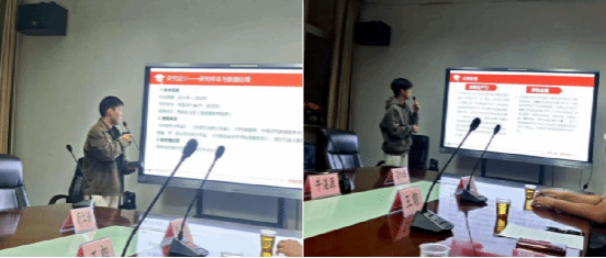 随后,牛湛源同学汇报了研究方法、实证结果与政策建议。方法上,构建涵盖基础、科技、绿色、数字四个维度的新质生产力发展指数,以及由绿色信贷、绿色证券、绿色保险、绿色投资构成的绿色金融指数,采用熵权-TOPSIS、工具变量与双重差分等方法进行识别与检验。实证结果显示,绿色金融对新质生产力具有显著正向影响,且在绿色生产力与数字生产力维度上效果尤为突出;机制检验验证了技术创新与环境关注度的中介作用;异质性分析表明,东部地区和经济发展水平较高地区的促进效应更强。同时,强化金融监管、发展金融科技、实施市场型环境规制等举措可进一步放大绿色金融的积极作用。基于此,研究提出了持续创新绿色金融产品与服务,因地制宜制定差异化政策,强化环境政策与绿色金融的协同联动,并着力提升技术创新能力与社会环境关注度等政策建议。